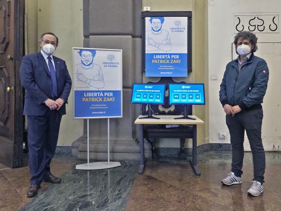 Nell’Atrio delle Colonne della Sede centrale dell’Università di Parma c’è una postazione con la sagoma di Patrick Zaki, lo studente dell’Università di Bologna arrestato più di un anno fa in Egitto, dov’è detenuto in carcere preventivo. È un counter che indica il tempo della detenzione di Zaki: un’iniziativa simbolica con la quale l’Ateneo, ancora una volta, ne chiede la scarcerazione.