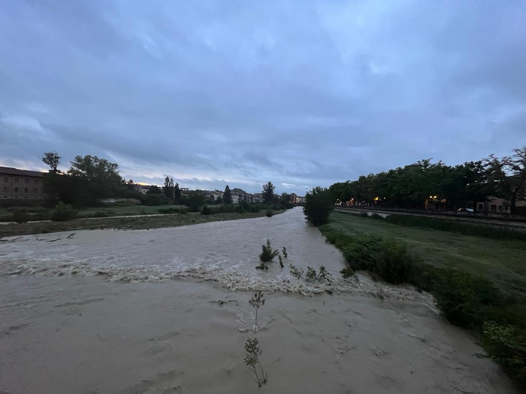 Nelle immagini il Baganza in città, alla confluenza con la Parma, la Parma in città e a Colorno attorno alle 14 e nel tardo pomeriggio di oggi.