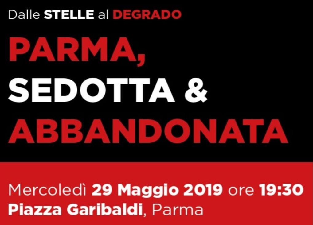 Per tale motivo, comunichiamo la nostra adesione alla manifestazione di protesta “Parma Sedotta e Abbandonata” del 29 maggio , alle ore 19,30 in piazza Garibaldi.