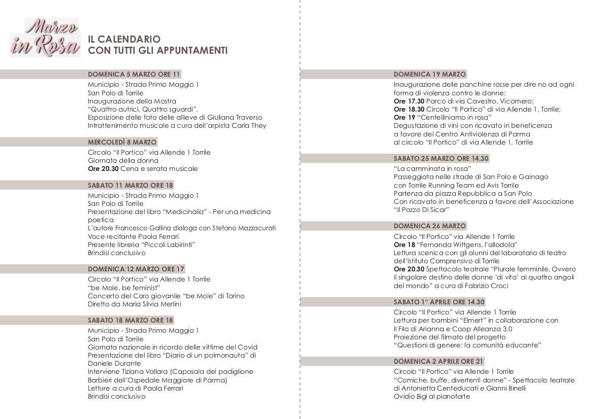 Marzo in Rosa 2023 a Torrile: 11 appuntamenti dedicati alle donne