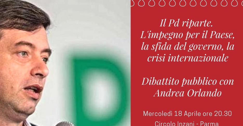 Andrea Orlando, Ministro della Giustizia e deputato del Pd, sarà a Parma mercoledì 18 aprile alle ore 20.30 per un incontro con la stampa e con i sostenitori del Partito Democratico. L’incontro si terrà mercoledì 18 aprile alle ore 20.30 presso il Circolo Inzani – Via ​Moletolo 61​ (Parma).