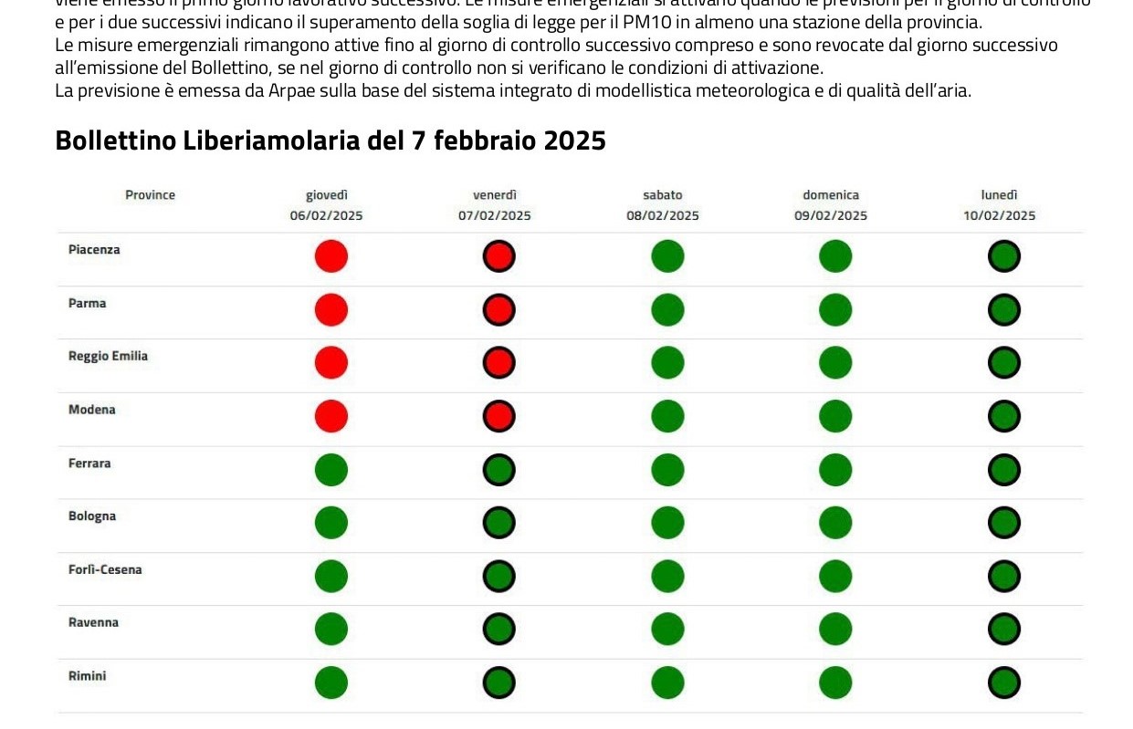 Migliora la qualità dell’aria, come conferma il bollettino Arpae di oggi, venerdì 7 febbraio. Niente misure emergenziali.
