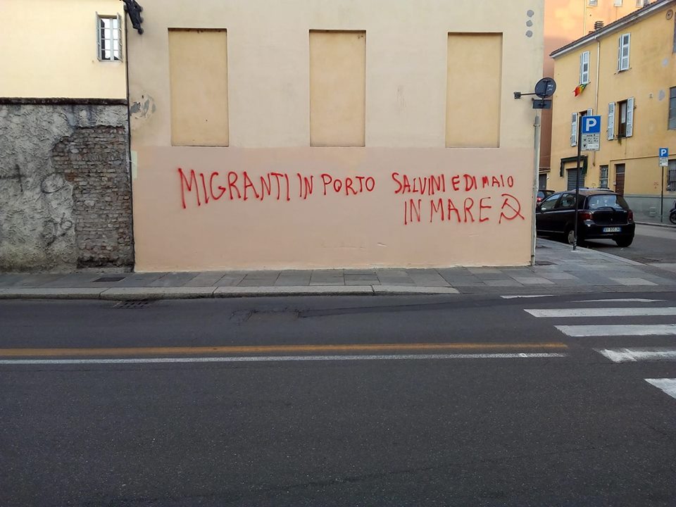 Non bastavano i giornali e Facebook, la polemica sui migranti si espande anche sui muri di Parma.