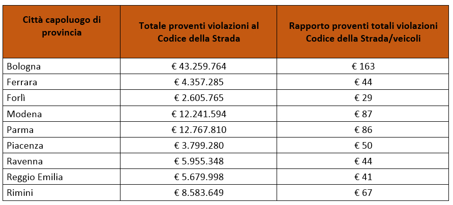 Complessivamente, le città capoluogo di provincia dell’Emilia-Romagna hanno incassato, nel 2022, più di 17 milioni di euro provenienti da violazioni dei limiti massimi di velocità.
