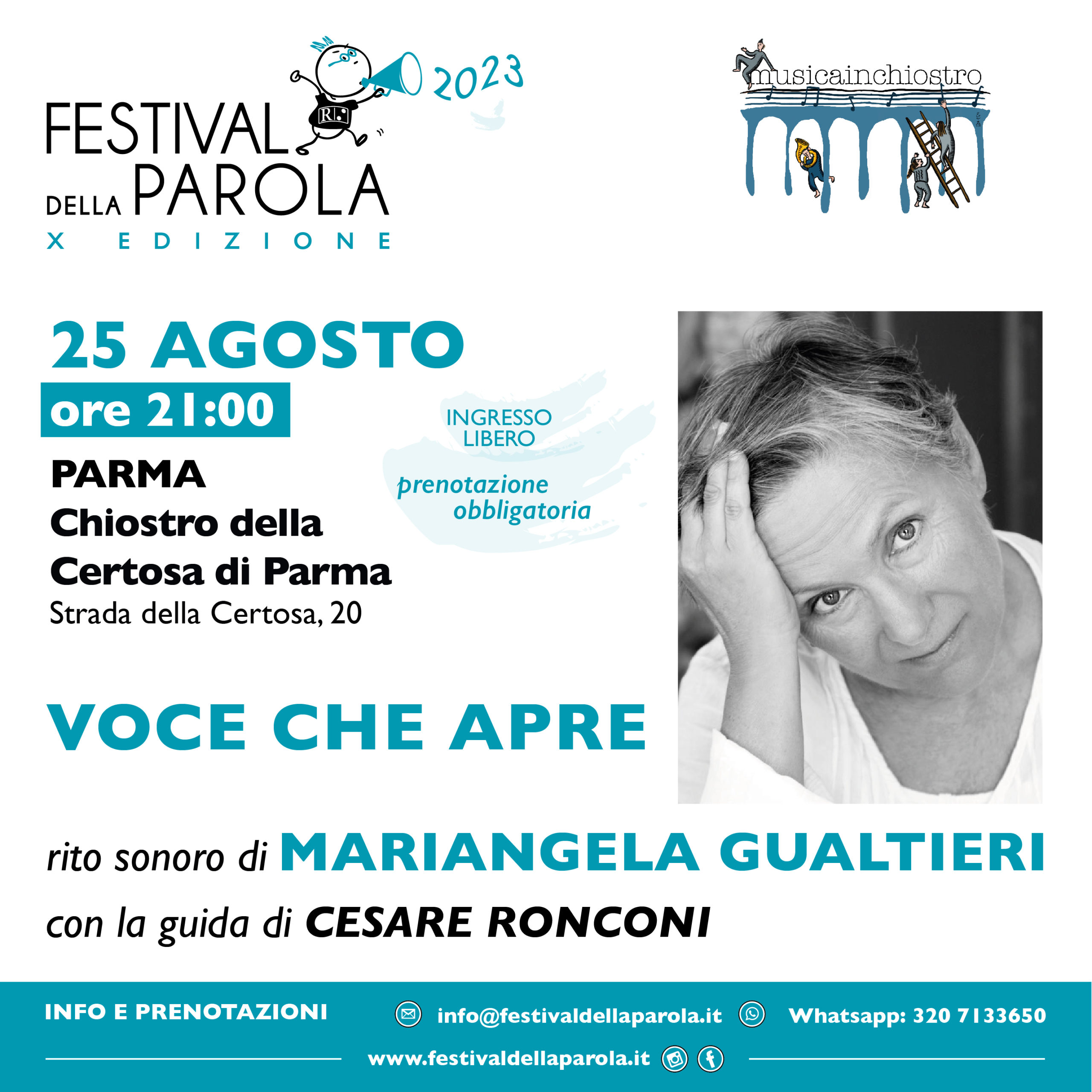 Info: www.festivaldellaparola.it – Facebook: @Festival della Parola di Parma – Instagram: @festivaldellaparola.it
