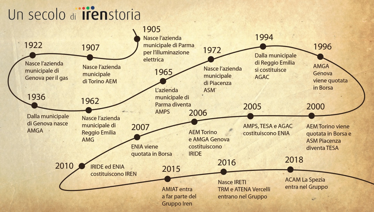 Il progetto Iren Storia intende, in un arco piano di 18-24 mesi, organizzare e catalogare in maniera organica, al fine di renderlo fruibile al pubblico, l’enorme patrimonio storico e culturale archivistico attualmente situato nelle sedi principali del Gruppo a Torino, Genova, Parma, Piacenza e Reggio Emilia.