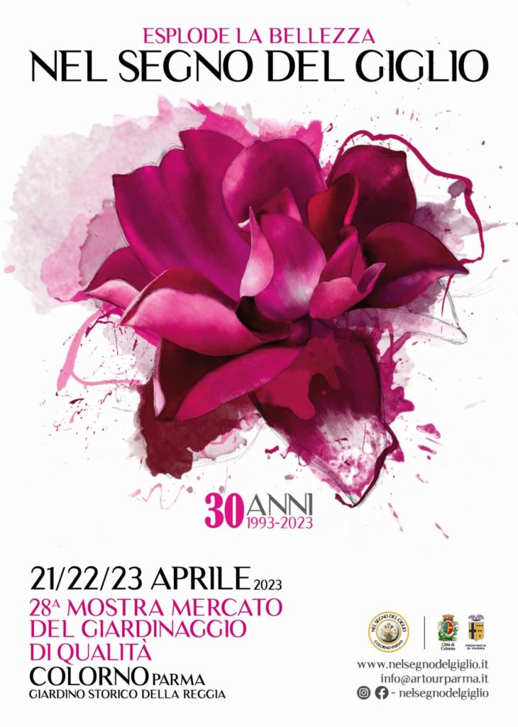 Da venerdì 21 a domenica 23 aprile 2022, a Colorno nel parco della Reggia, già palazzo ducale di Maria Luigia d’Austria, duchessa di Parma, Piacenza e Guastalla si festeggia la XXVIII edizione di “Nel segno del Giglio”, la storica mostra – mercato dedicata al giardinaggio di qualità, organizzata da BieBi Eventi, a cura dell’architetto Vitaliano Biondi – Arvales Fratres, con il patrocinio del Comune di Colorno e della Provincia di Parma. (www.nelsegnodelgiglio.it).