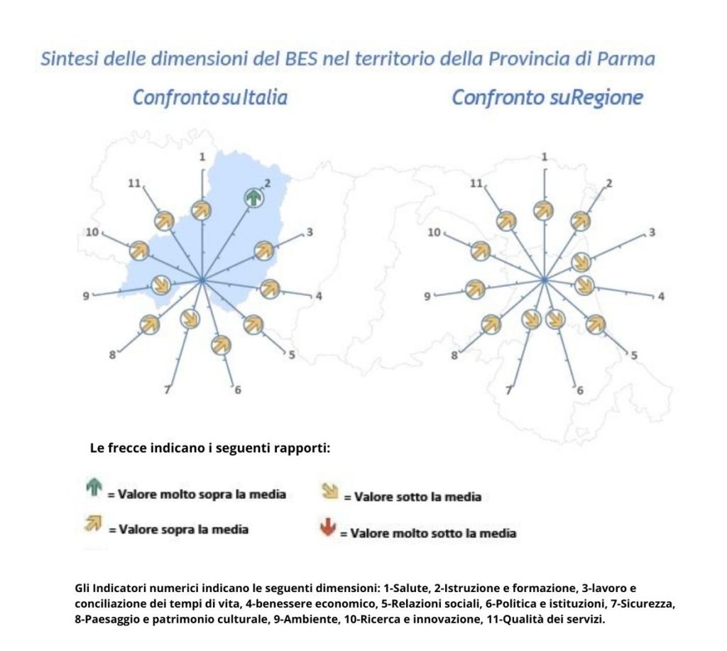 Risulta positivo il confronto della provincia di Parma con le altre realtà italiane, per quanto riguarda il Bes – Benessere equo e sostenibile 2020, che vede l’indicatore sintetico per dimensione superiore alla media nazionale per 9 dimensioni su 11.