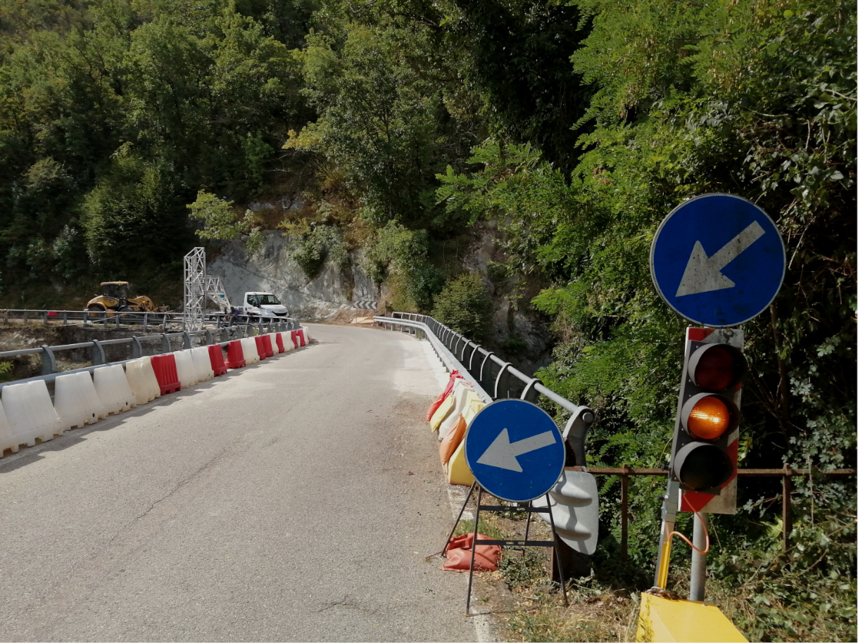 • l’istituzione di transito a senso unico alternato regolamentato da impianto semaforico, al centro della carreggiata.