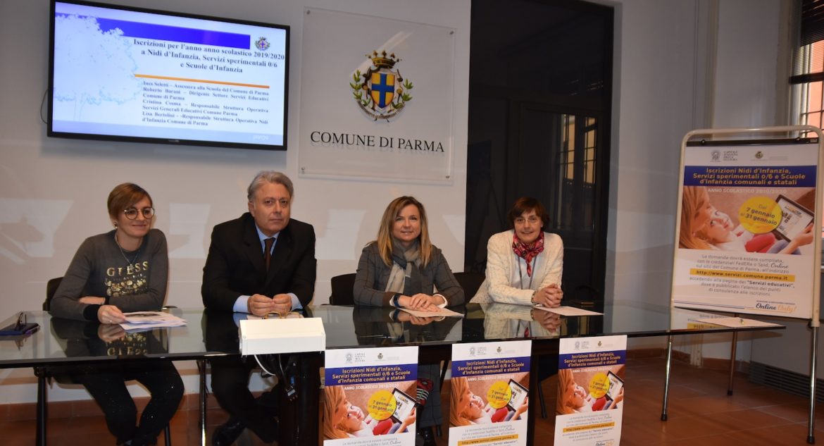 Si aprono, oggi, lunedì 7 gennaio 2019, le iscrizioni ai nidi d’infanzia, servizi sperimentali 0/6 e scuole dell’infanzia comunali e statali per l’anno scolastico 2019/2020. Ne hanno parlato, nel corso della conferenza stampa di approfondimento, Ines Seletti, Assessora alla Scuola del Comune di Parma; Roberto Barani, Dirigente Settore Servizi Educativi Comune di Parma; Cristina Cosma, Responsabile Struttura Operativa Servizi Generali Educativi Comune Parma e Lisa Bertolini, Responsabile Struttura Operativa Nidi d’Infanzia Comune di Parma.