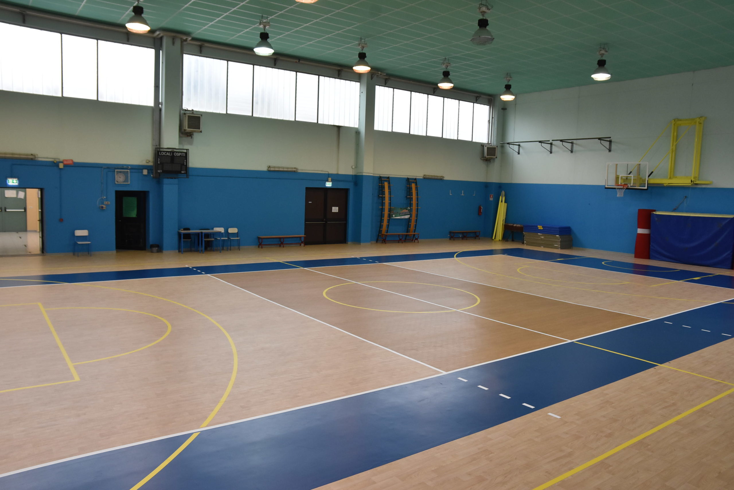 Vista la destinazione prevalente sono stati tracciati i campi per la pallavolo e per il basket, utilizzando anche colorazioni diverse per le varie discipline.