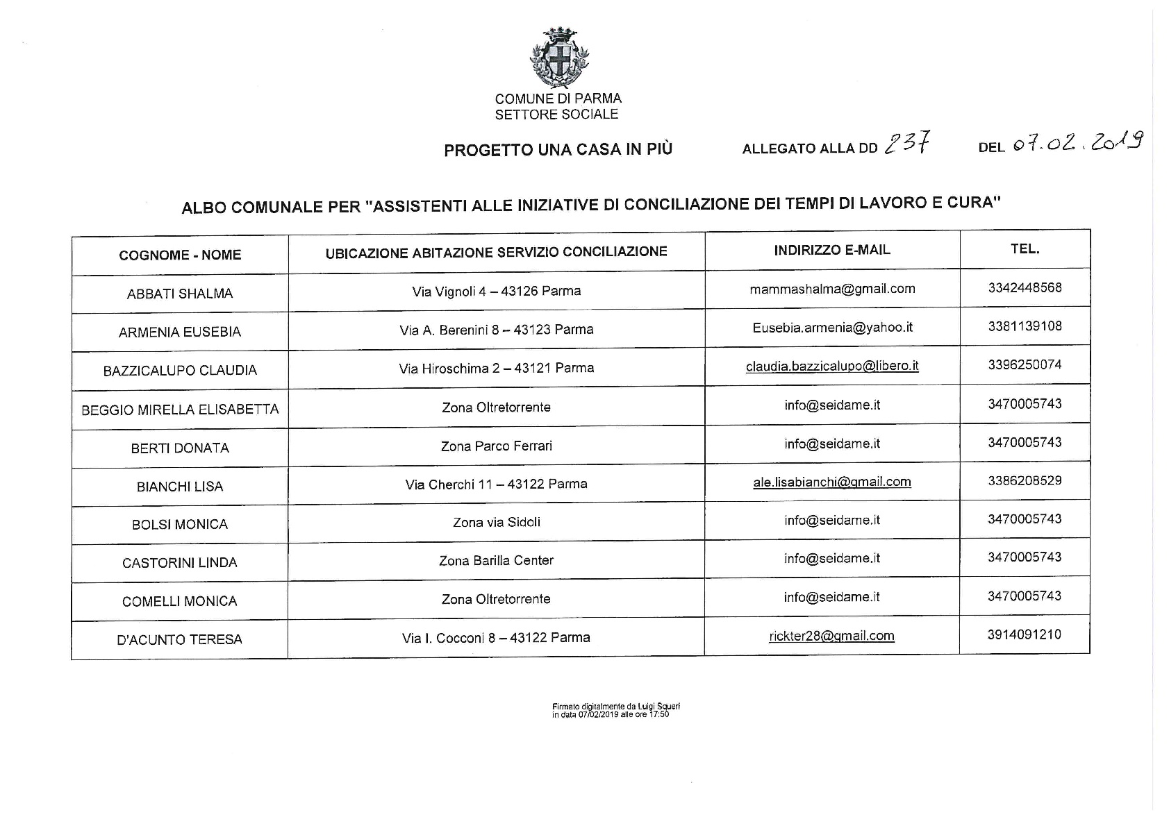 Le famiglie interessate possono rivolgersi, con propria autonoma scelta, ad uno tra gli Assistenti. Il rapporto tra la famiglie e l’Assistente è di natura privatistica.