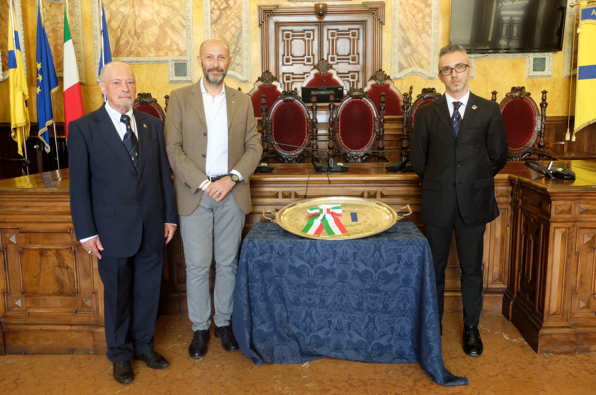 Nell’anno del centenario della fondazione del Gruppo delle Medaglie d’Onore al Valore Militare d’Italia l’Amministrazione Comunale ha ricevuto in dono un nuovo fiocco tricolore e il nastro azzurro relativo alle M.O.V.M.: a consegnarli in Municipio, nelle mani del presidente del Consiglio Comunale Michele Alinovi, sono stati il cavaliere Roberto Spagnoli, delegato provinciale di Parma dell’Istituto Nazionale per la Guardia d’Onore alle Reali Tombe del Pantheon (INGORTP), e il professore Carlo Spaggiari, vice delegato vicario.