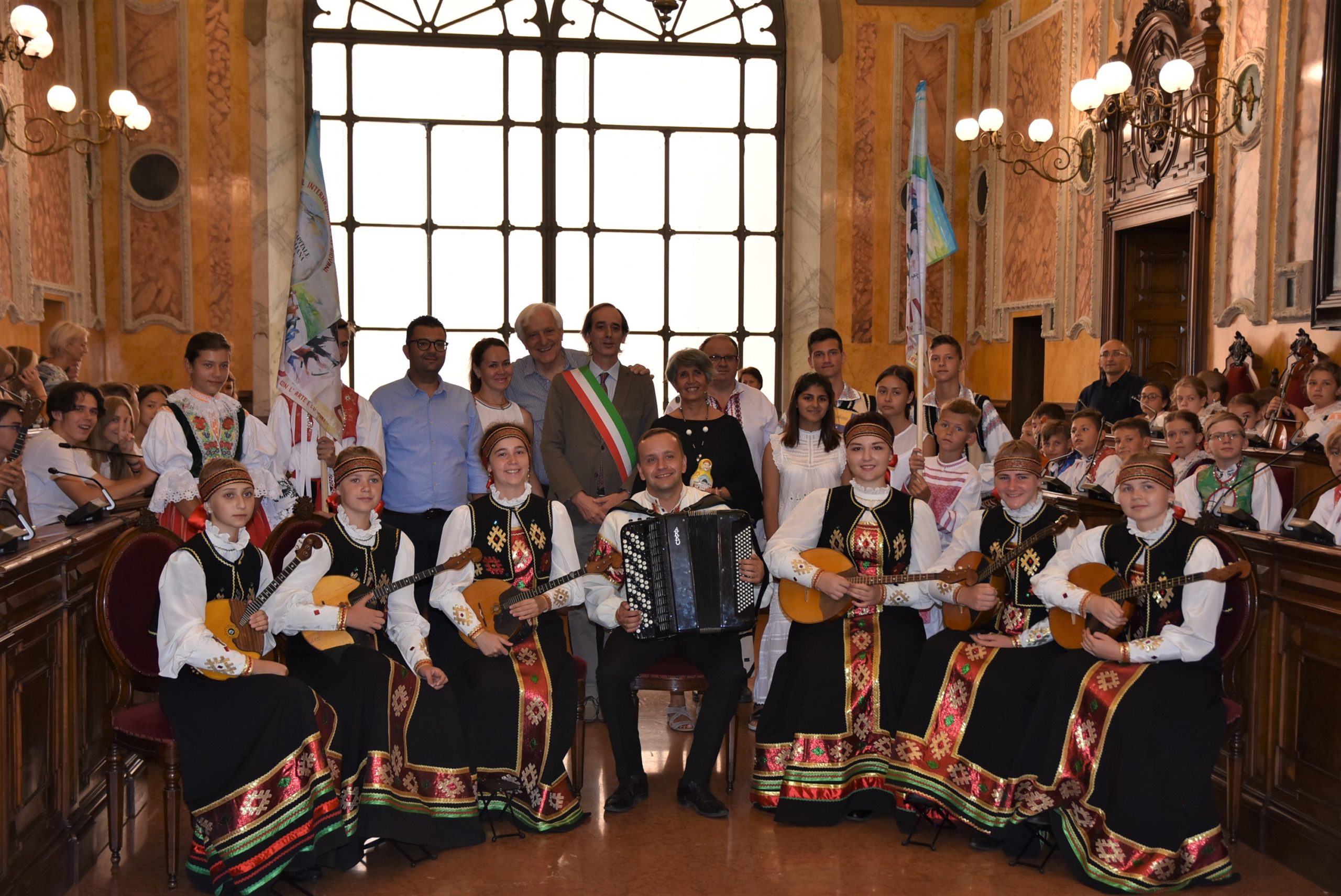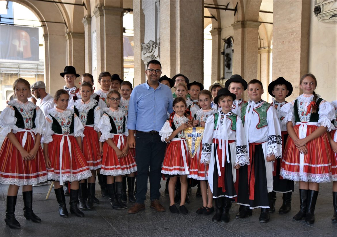 Ad accogliere i quasi cento giovani, i loro maestri di musica e ballo e i coordinatori, in Sala Consigliare sono stati il Presidente Alessandro Tassi Carboni, l’Assessora Nicoletta Lia Rosa Paci, e il Consigliere Aggiunto Marion Gajda.