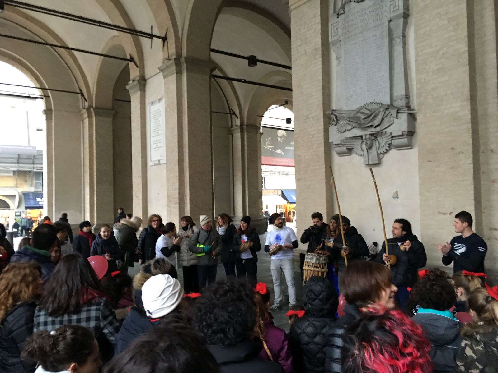 Si è ballato tutti insieme questo sabato pomeriggio, sotto i Portici del Grano, seguendo la parola d’ordine del 2018 “solidarietà”. Sensibilizzare contro la violenza sulle donne e le bambine, riportare al centro del dibattito pubblico i loro diritti e la parità di genere, non far sentire sole le vittime di violenze fisiche e psicologiche sono gli obiettivi dell’iniziativa internazionale che si veste di rosso ideata da Eve Ensler.