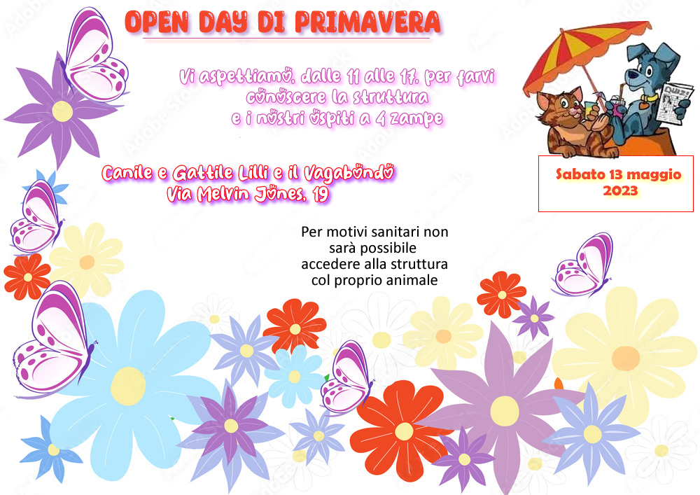 Se avete il progetto di adottare un amico a quattro zampe venite a conoscerli l’open day di Primavera non vi deluderà: conoscerete le modalità di adozione, parlerete con gli operatori che vi spiegheranno che gli animali vengono affidati vaccinati e sterilizzati, vedrete come sono educati gli ospiti di Lilli e il Vagabondo e come possono dimostrare gratitudine e affetto anche solo per una visita.