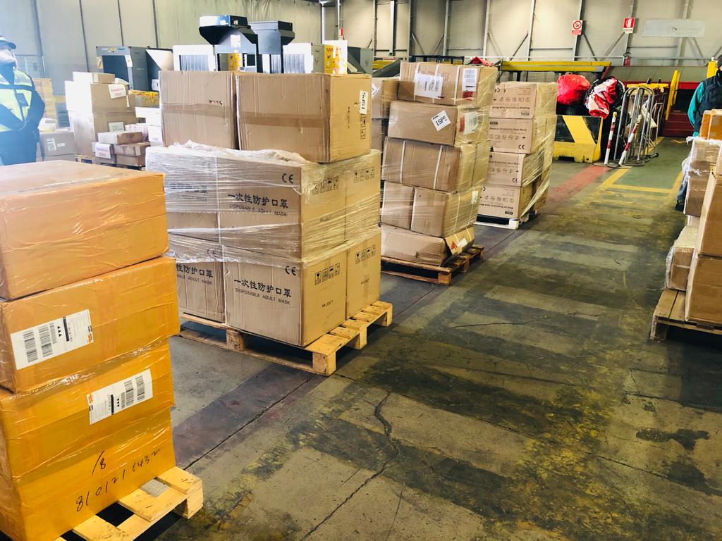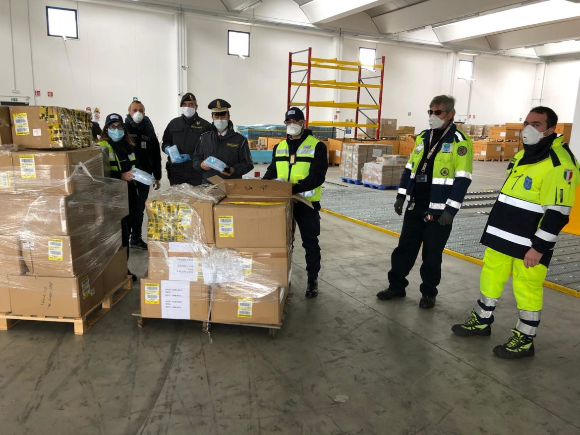 50mila mascherine e oltre 13mila dispositivi medici monouso per la ventilazione respiratoria requisiti questa mattina all’aeroporto e all’interporto di Bologna e già consegnati all’Agenzia di protezione civile dell’Emilia-Romagna.