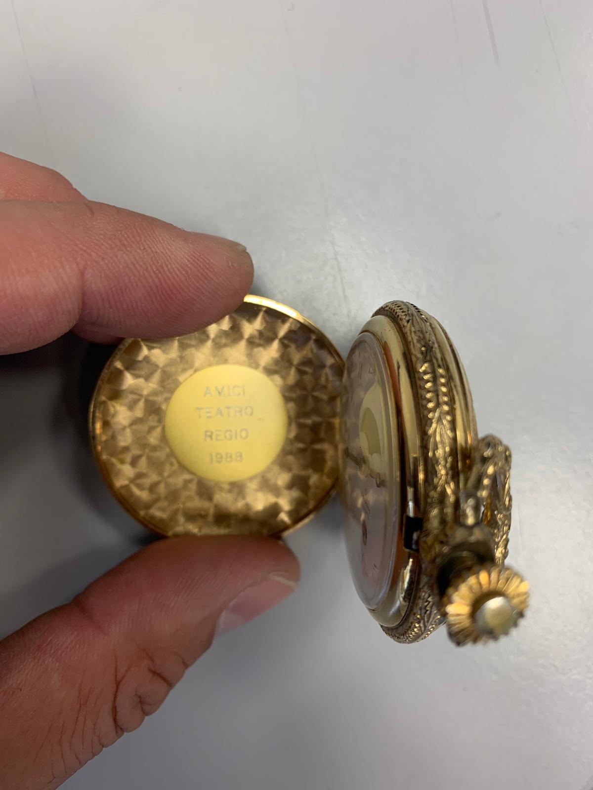 Addosso all’uomo è stato trovato un orologio d’oro da taschino con una scritta amici teatro Regio 1988 orologio di cui il soggetto non ha saputo giustificare il possesso.