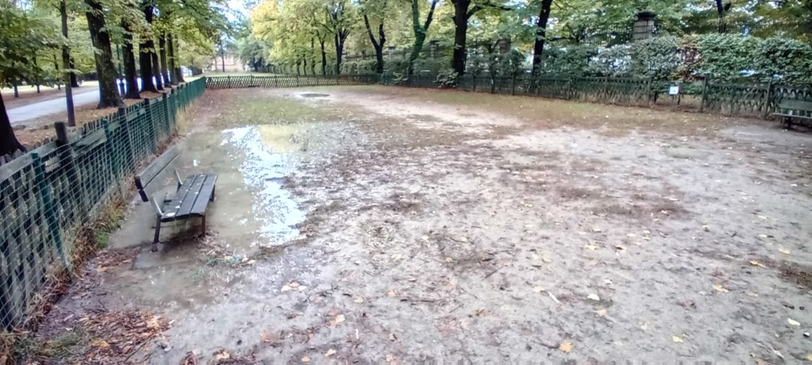 La maggior parte delle aree cani sono poco curate per quanto riguarda la gestione del verde e si allagano con le prime piogge: per esempio l’area di via Bramante, quella all’interno del Parco Ducale, quelle già citate di via Pizzaferri e di via Genova.