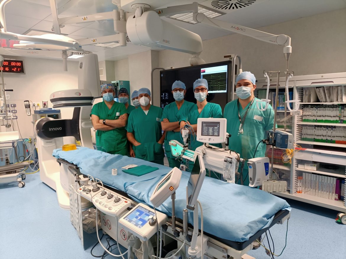 Due interventi salvavita al cuore e all’aorta addominale eseguiti in simultanea da cardiologi interventisti e chirurghi vascolari senza ricorrere ai bisturi e in anestesia locale. Un caso quasi unico, basti pensare che in letteratura sono stati pubblicati meno di 15 casi al riguardo effettuati a livello mondiale.
