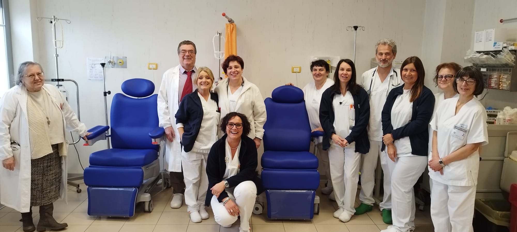 Le quattro poltrone donate sono complete di accessori come asta portaflebo, portarotolo e cuffia poggiapiedi e sono già in uso da alcune settimane al day-hospital oncologico che ha in cura circa 2.000 persone all’anno.