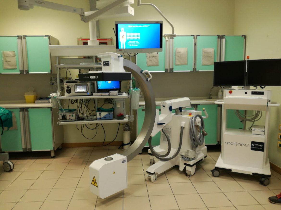 Si tratta di un apparecchio radiologico mobile per radioscopia e radiografia “di brillanza” in 3D, ad alta efficienza e di ultimissima generazione da utilizzarsi in sala endoscopica per interventi anche complessi a pancreas, fegato e vie biliari.