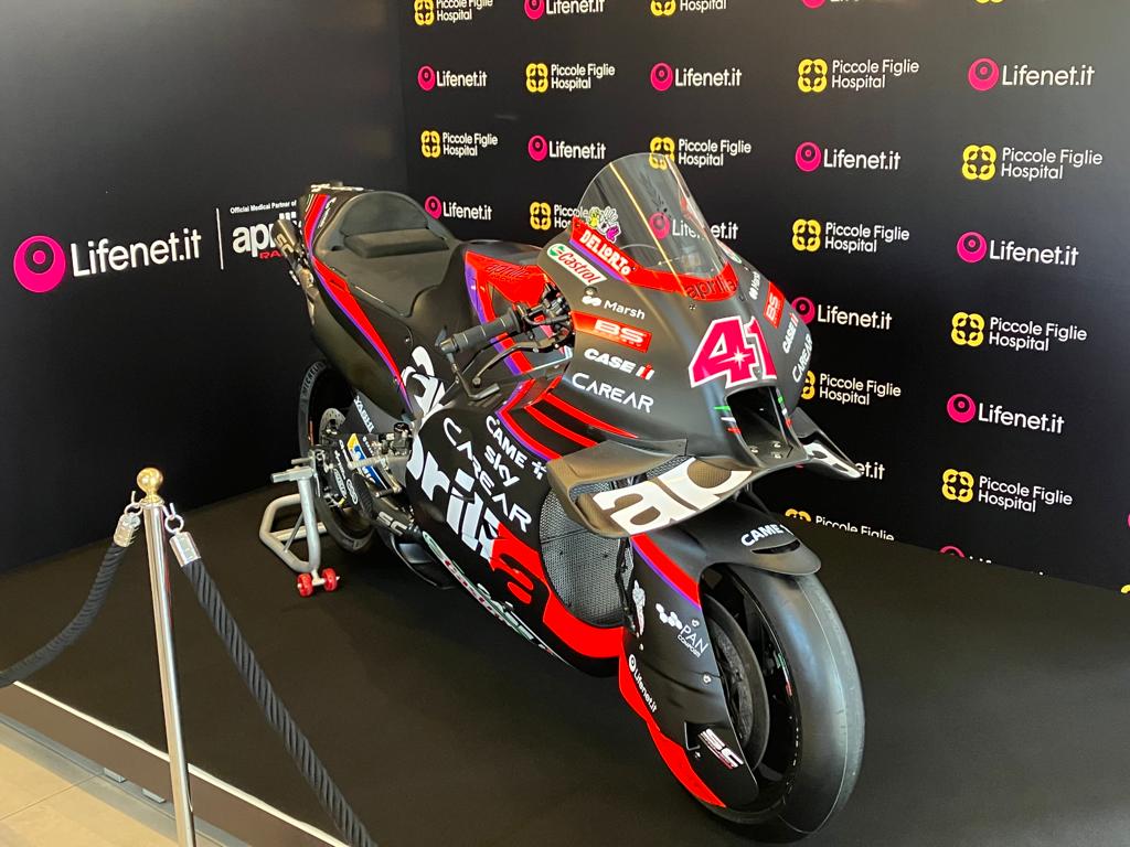 E proprio nel nuovo ingresso, da oggi fino al 1° maggio sarà esposta per la prima volta al pubblico la moto ufficiale del team Aprilia Racing, impegnata nel campionato mondiale di MotoGPL’iniziativa è stata resa possibile perchè Lifenet Healthcare, il gruppo sanitario a cui fa capo il Piccole Figlie Hospital, è Official Medical Partner di Aprilia Racing per la stagione MotoGP 2023. In ogni circuito, Lifenet fornisce un team altamente qualificato di medici e fisioterapisti in grado di trovare la risposta più efficace possibile ad ogni tipo di problema sanitario e garantire il tempestivo recupero fisico di piloti, tecnici, meccanici e in generale di tutti i membri della squadra di Noale, anche avvalendosi di servizi di telemedicina.