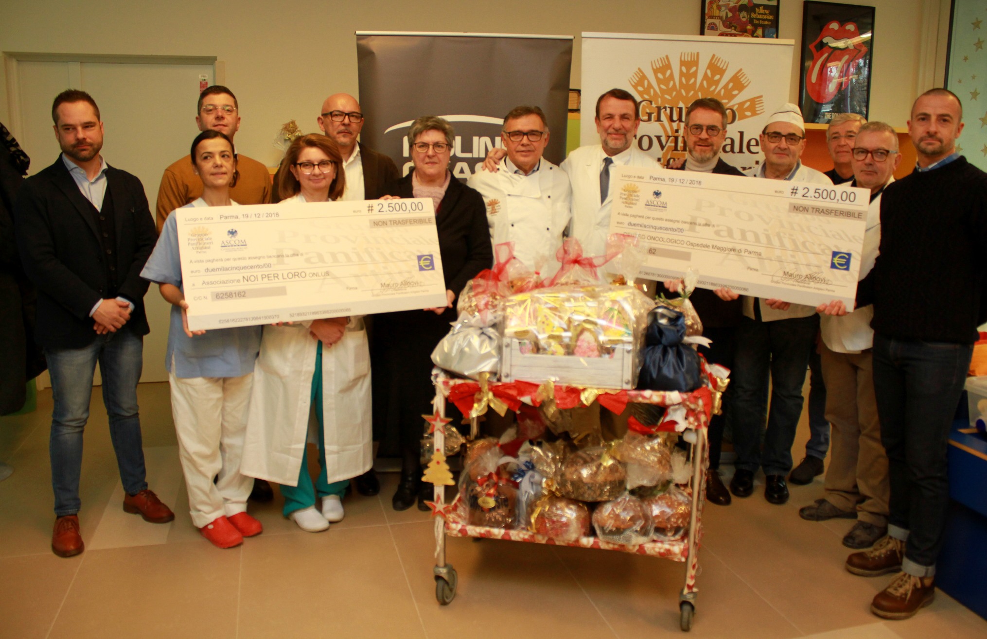 Un gesto consolidato nel tempo quello dei Panificatori, come ha ricordato Nella Capretti dell’associazione Noi Per Loro. “L’appoggio di tanti amici ci regala l’entusiasmo delle origini nel sostenere a nostra volta i giovani pazienti ricoverati e le loro famiglie in un periodo così doloroso della loro vita”. Un ringraziamento sentito è arrivato anche dai direttori dei reparti del Maggiore Patrizia Bertolini e Francesco Leonardi perché sono gesti – hanno dichiarato i due direttori – “che ci fanno sentire nel cuore dei parmigiani e della città e ci aiutano a portare avanti quei progetti che permettono di prendersi cura della persona, grande e piccola, nella sua interessa che significa terapia e assistenza al paziente ma anche accoglienza e attenzione alla persona”.