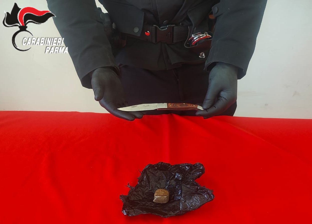 Una pattuglia della Sezione Radiomobile entra all’interno del Parco Ducale e nei pressi del parco giochi per bambini nota uno straniero in atteggiamento sospetto. L’uomo, durante il controllo, è stato trovato in possesso di un coltello e della sostanza stupefacente.