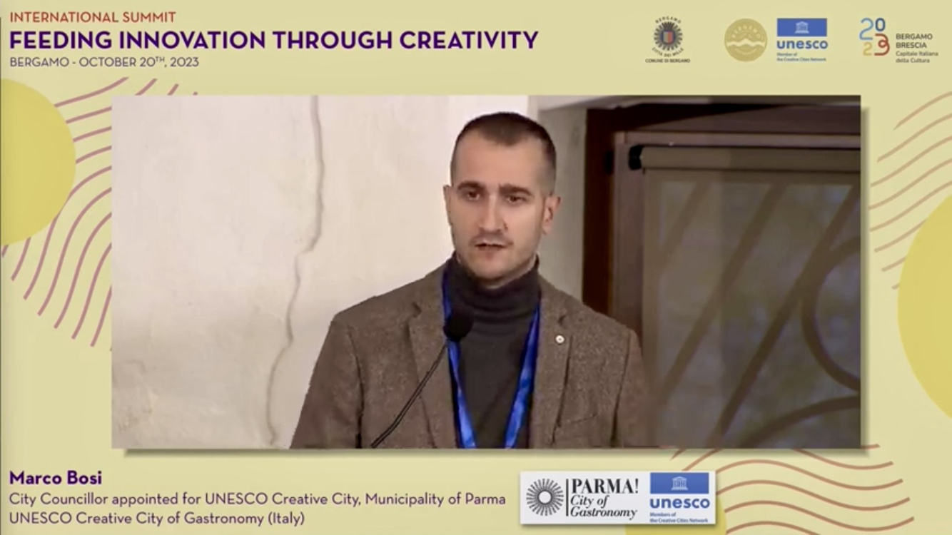 L’assessore alla Città Creativa UNESCO per la Gastronomia, Marco Bosi, ha partecipato, nei giorni scorsi, al IV Summit internazionale delle Città Creative a Bergamo. Le città creative Unesco per la Gastronomia in Italia sono tre: Parma, Alba e Bergamo. A loro si sono uniti i rappresentanti delle Città Creative UNESCO di Merida (Messico), San Antonio (USA), Bergen (Norvegia), Burgos (Spagna), Rouen (Francia), Santa Maria da Feira (Portogallo). Parma ha ottenuto il prestigioso riconoscimento nel 2015.