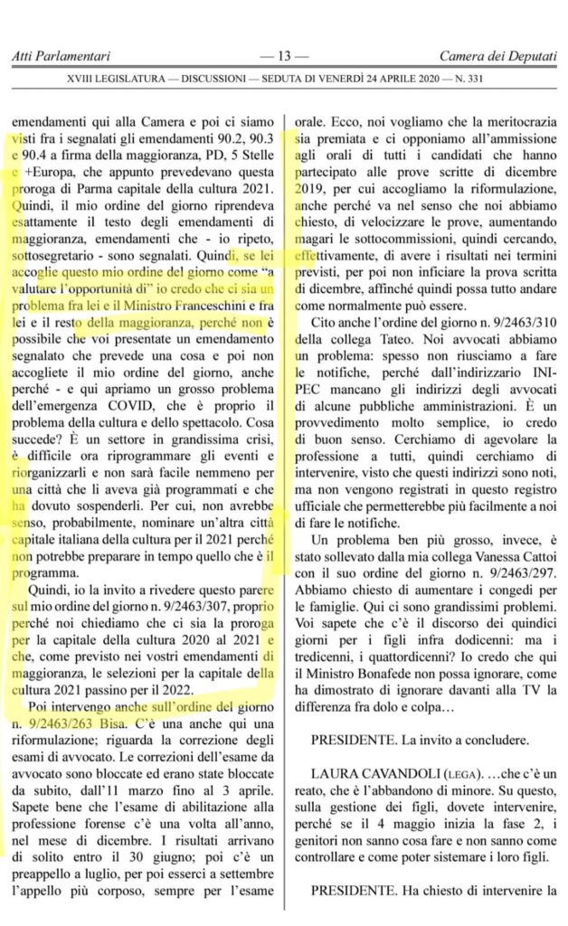 Nonostante i loro sforzi, gli esponenti parmigiani del PD non riescono a spiegare perché il ministro Franceschini, capo delegazione PD nel Governo, dopo tante dichiarazioni, non abbia fatto inserire la proroga da subito nel Cura Italia e neppure perché PD e 5Stelle abbiano votato contro gli emendamenti della Lega in Senato, non abbiano votato nemmeno i propri alla Camera né, infine, perché se l’Odg Cavandoli era così difficile da votare, non ne abbiano fatto uno loro.