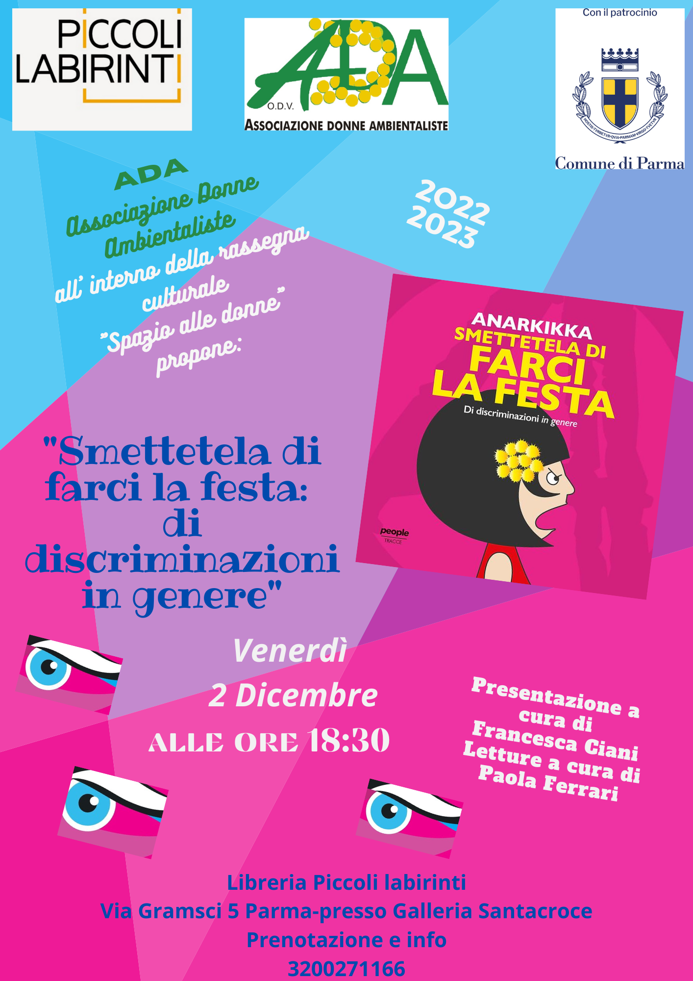 presso la Libreria Piccoli Labirinti in viale Gramsci 5 con “Smettetela di farci la festa. Di discriminazioni in genere”.