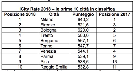“Le tre città al vertice di ICity Rate 2018 seguono un modello di sviluppo e di governance urbana molto diversi, ma capaci di portare buoni risultati in molti delle dimensioni analizzate dalla ricerca – prosegue Dominici –. Milano, con i suoi elevati livelli di sviluppo, la distribuzione settoriale e quantitativa delle sue attività produttive, l’appartenenza piena alla rete delle città europee nodi di interscambio internazionale, è un’eccezione difficilmente replicabile altrove. Firenze è riuscita ad affiancare al suo tradizionale punto di forza, la cultura e il turismo, ottimi risultati nella trasformazione digitale, nel lavoro, nell’istruzione e nella mobilità sostenibile. Bologna, invece, è riuscita a ottenere il primato nella dimensione lavoro, consolidando allo stesso tempo i suoi punti di forza nell’energia e nella governance e partecipazione civile. Il tradizionale divario Nord/Sud si ripropone non solo negli ambiti di ritardo più conosciuti (lavoro, solidità economica) ma anche nei settori maggiormente innovativi (ricerca e innovazione, trasformazione digitale, energia). Si nota, inoltre, l’emergere di sette piccole realtà urbane innovative che realizzano i più significativi miglioramenti di posizione in classifica grazie alla combinazione di insediamenti innovativi, buona gestione di servizi funzionali e tutela delle condizioni di sicurezza e legalità”.