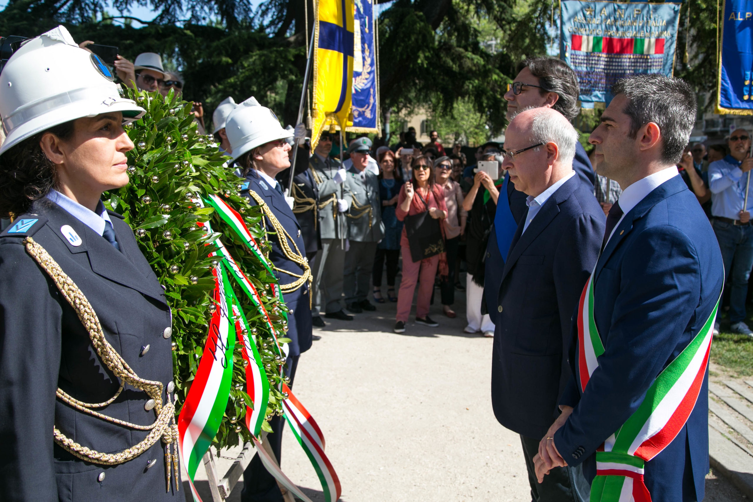 Essere capaci, nella quotidianità, di fare delle scelte coraggiose, così come i protagonisti della Liberazione fecero 73 anni fa per dare seguito ad una società che sia fondata sui valori della democrazia e della libertà e che che abbia come punto di riferimento l’individuo, la sua umanità, la comunità in cui è inserito e l’apporto che il singolo è in grado di dare, ogni giorno, al suo sviluppo in positivo: è questo il messaggio trasversale lanciato dai relatori che si sono susseguiti sul palco delle autorità in piazza Garibaldi nel momento della celebrazione solenne dei 73 anni della fine della guerra, della Liberazione e della Resistenza.