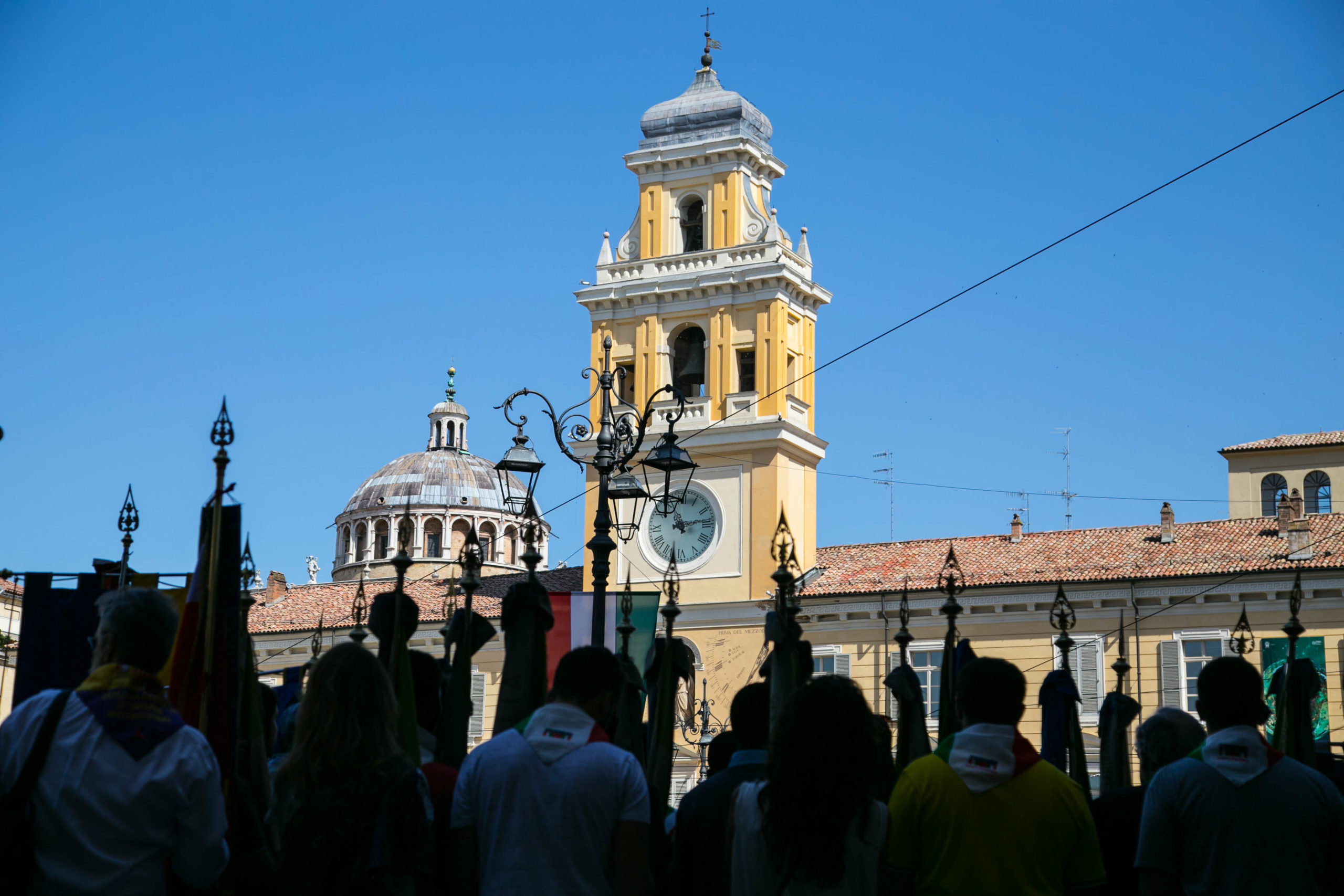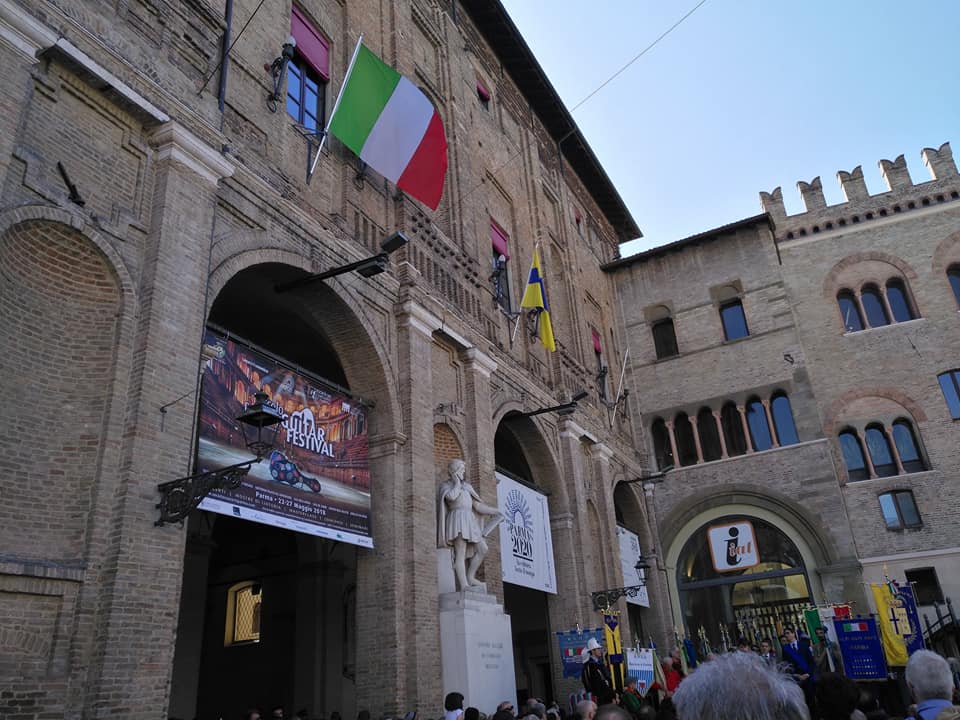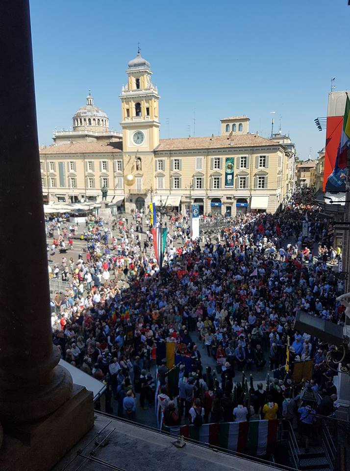 In piazza Garibaldi hanno portato il loro saluto il sindaco di Parma Federico Pizzarotti; Gianpaolo Serpagli, consigliere provinciale con delega alla scuola ed alla viabilità, in rappresentanza della Provincia di Parma; il presidente della Consulta studentesca Giulio Bricoli.