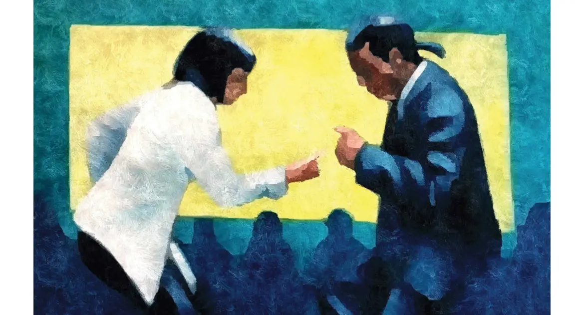 L’opera – un olio su tela con interventi digitali minimi – si ispira alla danza iconica di Uma Thurman e John Travolta nel Jack Rabbit Slim’s di Pulp Fiction, capolavoro di Quentin Tarantino.