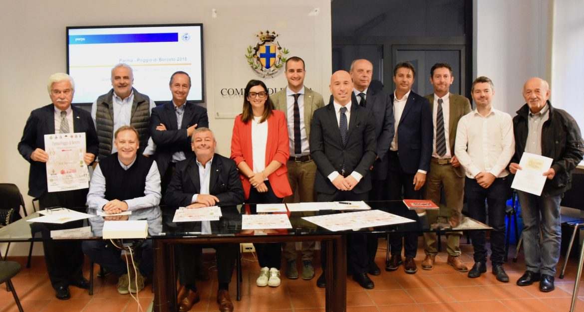 E’ stata presentata oggi in conferenza stampa la nuova edizione della Parma – Poggio di Berceto alla presenza del vice sindaco Marco Bosi, di Gianfranco Bertei presidente Comitato Organizzatore, di Giancarlo Gonizzi del Musei del Cibo, di Lorenzo Numanti consigliere d’Amministrazione Monte delle Vigne, di Giovanni Ronchini vice sindaco con delega allo Sport Comune di Sala Baganza, di Massimiliano Tintori presidente Ferrari Club Parma, di Monica Zatti direttrice Marketing Gruppo Zatti, di Domato Carlucci direttore della Manifestazione e di Agostino Maggiali presidente dei Parchi del Ducato.