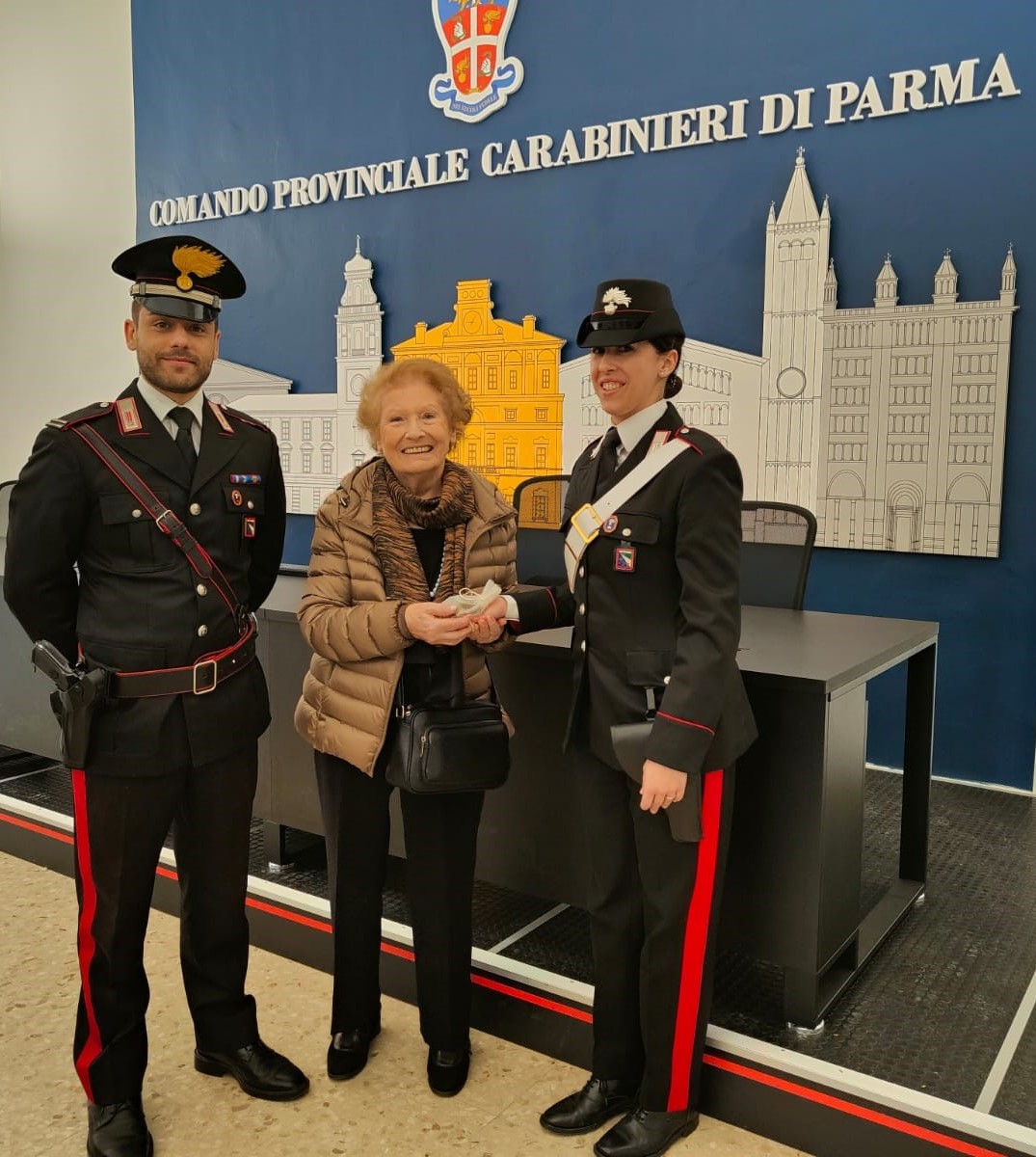 L’appuntamento era fissato per le 11,00 per dare tempo alla 84enne, residente in Toscana di raggiungere Parma, ma alle 08.00 la donna accompagnata dalla figlia era già in caserma, l’emozione derivante da quella restituzione era evidente e non certo per il valore economico, ma per quel pezzo di vita che le stava per essere restituito: i doni ricevuti dai genitori e dal marito, segni tangibili di sentimenti immortali.
