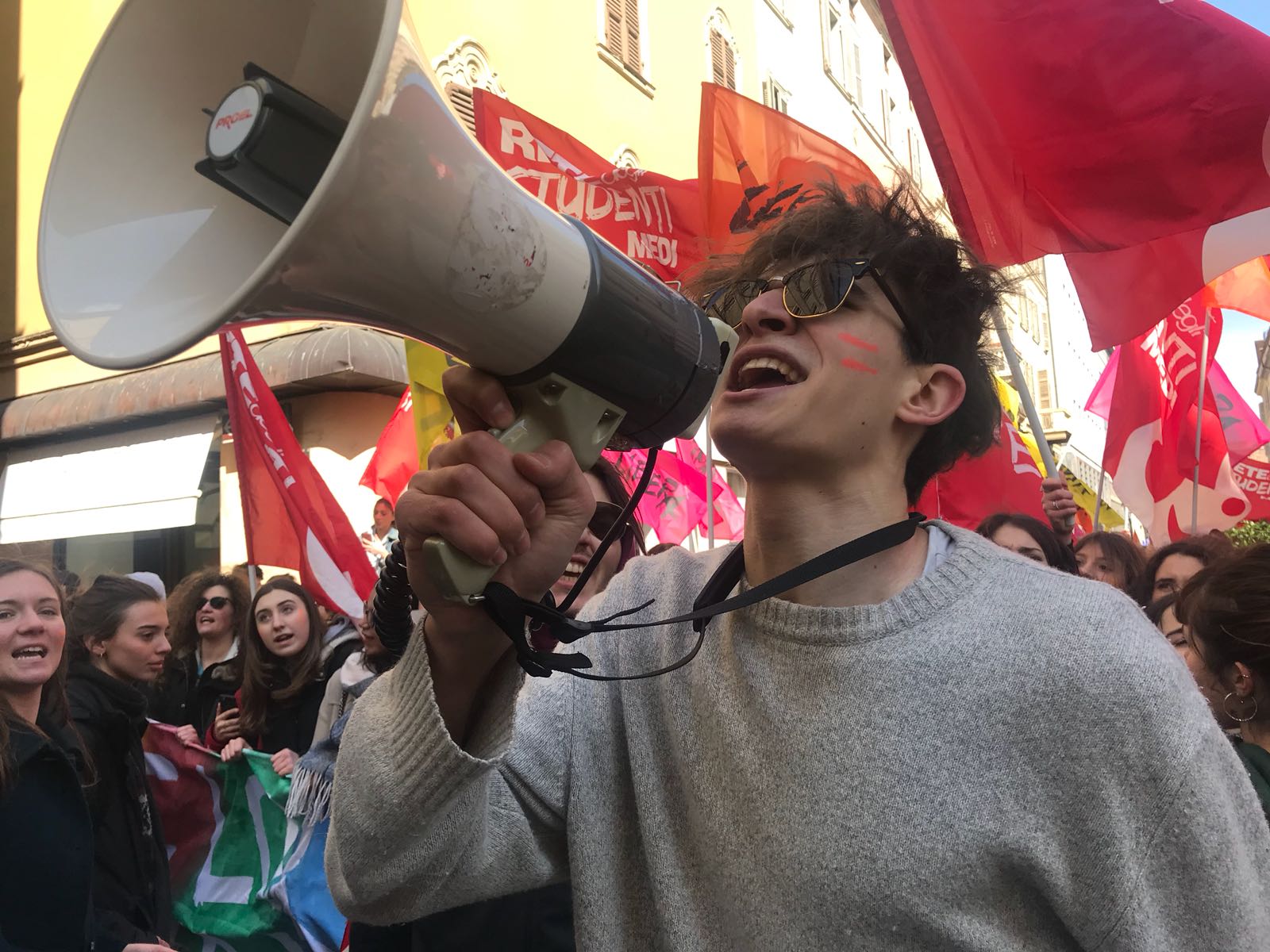 Oggi allo spezzone studentesco del corteo, organizzato dalla Rete degli Studenti dell’Emilia-Romagna hanno partecipato 5000 studenti delle scuole superiori della regione.