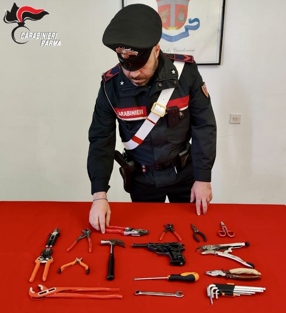 Nel corso della perquisizione, all’interno dell’auto, sotto il sedile dove era seduto inizialmente il 43enne, i militari hanno rinvenuto una borsa contenente una “pistola scacciacani” in metallo priva del tappo rosso e un kit per lo scasso, in particolare: 3 pinze, 4 forbici, 1 martello, 1 tronchesina, 3 chiavi a pappagallo, 1 set di chiavi esagonali, 1 cacciavite e una chiave inglese.