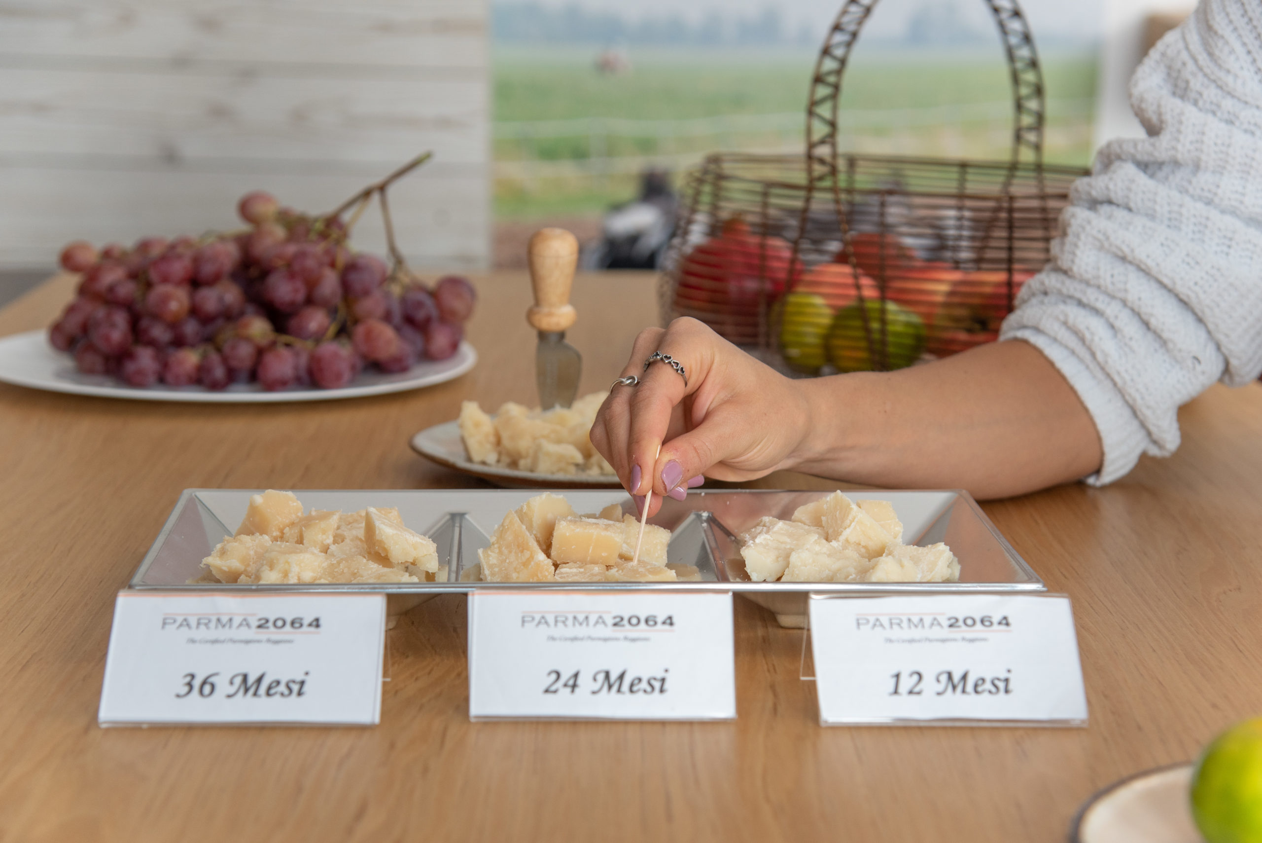 Ci sono luoghi dove il tempo rallenta, dove la qualità richiede pazienza, dove l’eccellenza è un’arte che si misura in mesi o addirittura anni. Parma2064 è uno di questi luoghi. Si trova a Fidenza, proprio all’uscita del casello A1 dell’autostrada. Si tratta di una cooperativa che propone tutta la filiera del Parmigiano Reggiano, occupandosi con autentica passione di tutte le fasi fondamentali: coltivazione dei campi, allevamenti, mungitura, trasformazione del latte, stagionatura del formaggio, fino alla vendita nel proprio spaccio. Qui nasce il Parmigiano Reggiano pluripremiato, che non è solo un formaggio, ma una dichiarazione d’amore al territorio.