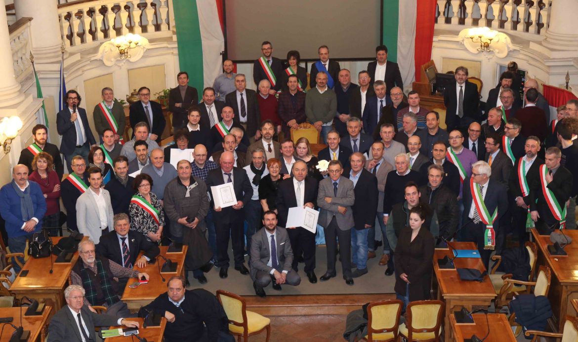 Oggi, martedì 16 gennaio, a Reggio Emilia, nella splendida cornice della Sala del Tricolore, si è tenuta una festa per celebrare il successo della spedizione della Nazionale del Parmigiano Reggiano a Londra, in occasione dei World Cheese Awards di fine novembre. Sono intervenuti i vertici del Consorzio di Tutela, dal Presidente Nicola Bertinelli al Vice Presidente vicario Guglielmo Garagnani, passando per l’ideatore della Nazionale del Parmigiano Reggiano, Gabriele Arlotti, e rappresentanti istituzionali e del mondo economico, come il Sindaco di Reggio Emilia Luca Vecchi, il Presidente della Provincia di Reggio Emilia Giammaria Manghi, il Commissario della Camera di Commercio Emilia, Michelangelo Dalla Riva, oltre a una vasta delegazione di Sindaci del comprensorio, in fascia tricolore.