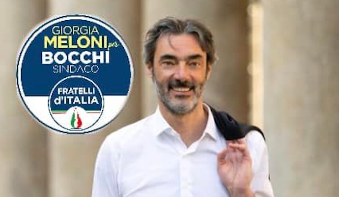 Nel logo campeggia la dicitura “Giorgia Meloni per Bocchi sindaco”.