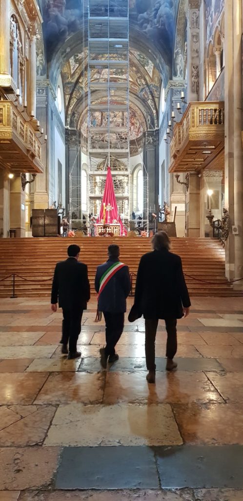 La celebrazione si è svolta, per la prima volta, con il Duomo vuoto, senza la presenza di fedeli, nel rispetto delle misure anticontagio legate all’emergenza Covid – 19. Le autorità cittadine, nel rispetto delle norme in vigore, hanno voluto comunque condividere la significativa celebrazione.