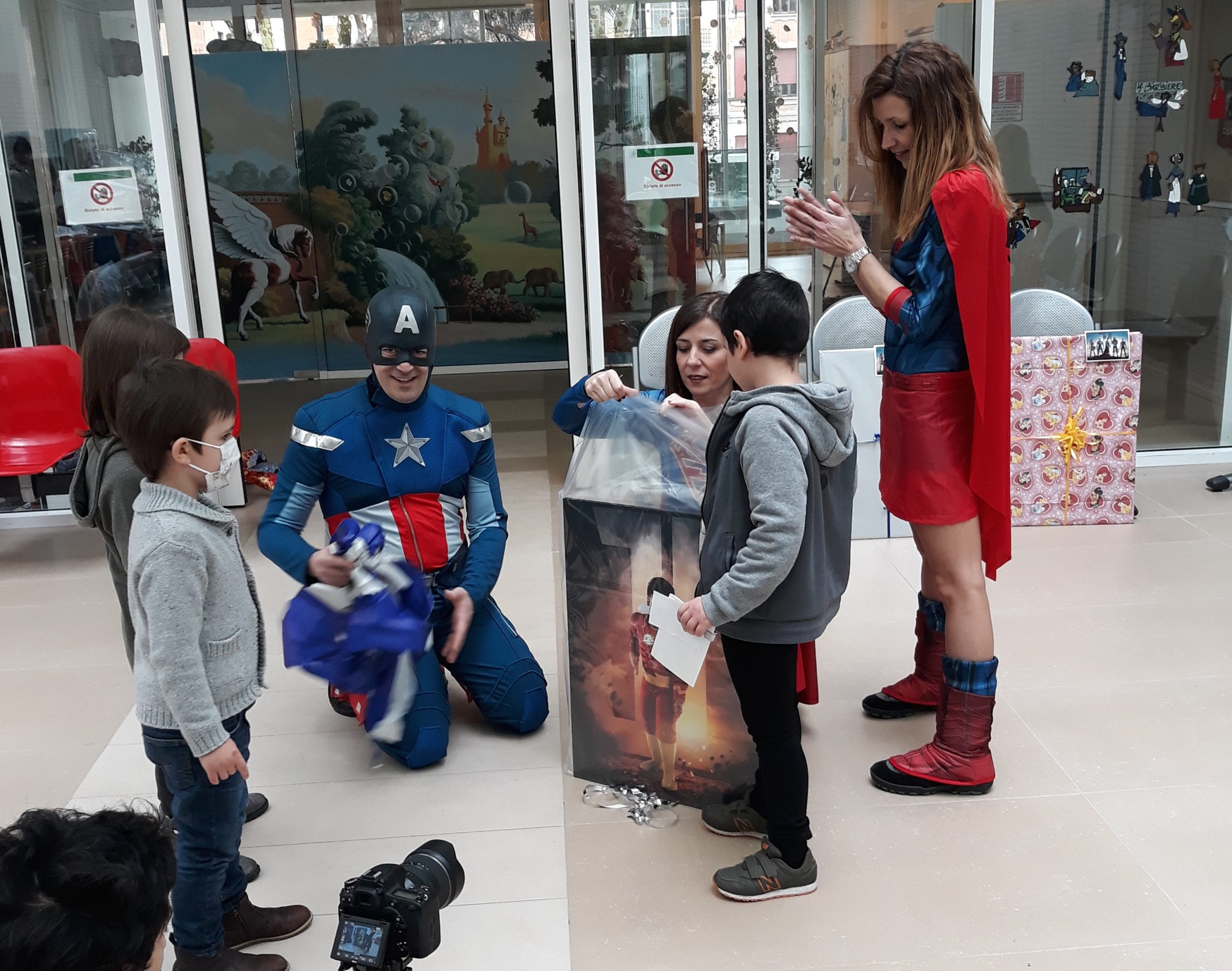 “Guarda mamma, sono Superman!”, esclama Andrea tutto orgoglioso mentre ritira la mega foto che lo ritrae nei panni del suo super eroe preferito. C’è chi si è trasformato in Batman, chi in Spider Man, chi in Capitan America. Ogni piccolo paziente ha scelto un personaggio che più lo rappresentava e i volontari dell’associazione I folletti li hanno immortalati in una foto che è stata riconsegnata questa mattina con un festa nel reparto di Pediatria e Oncoematologia dell’Ospedale dei Bambini “Pietro Barilla”.