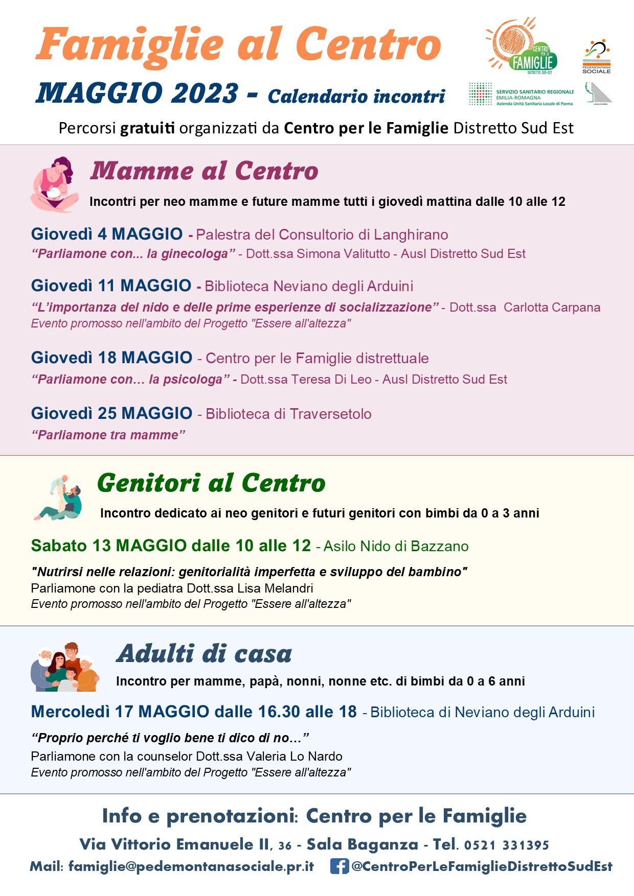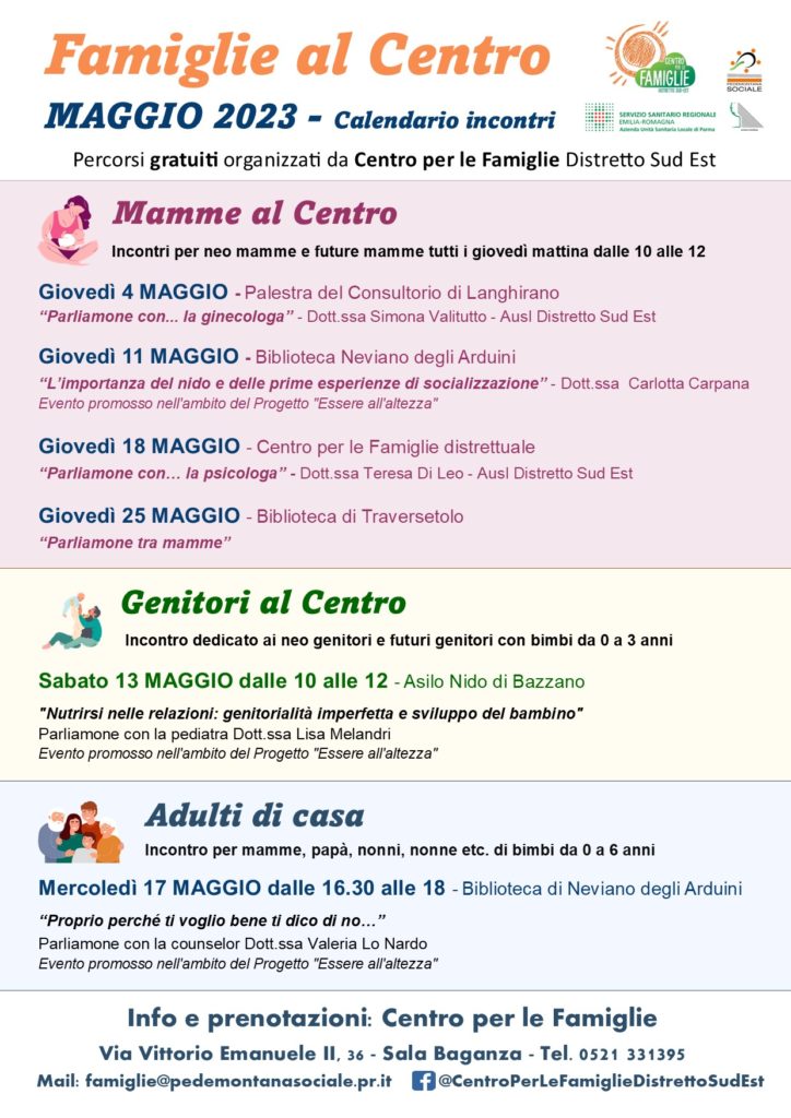 I calendari mensili degli appuntamenti sono disponibili anche sul sito internet www.unionepedemontana.pr.it e sulla pagina Facebook del Centro per le Famiglie.