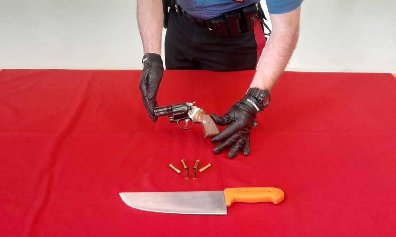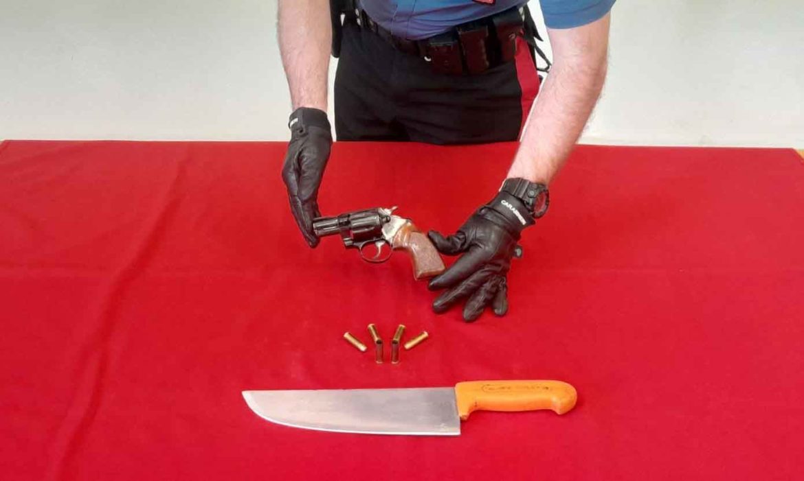 L’uomo, italiano, è apparso fin da subito estremamente nervoso ed insofferente al controllo tanto da indurre i Carabinieri a procedere ad una verifica più approfondita. L’uomo, sottoposto a perquisizione è stato trovato in possesso, nascosta all’interno della manica del giaccone, di una pistola tipo revolver, calibro 38 con 6 proiettili inseriti nel tamburo di cui due esplosi.