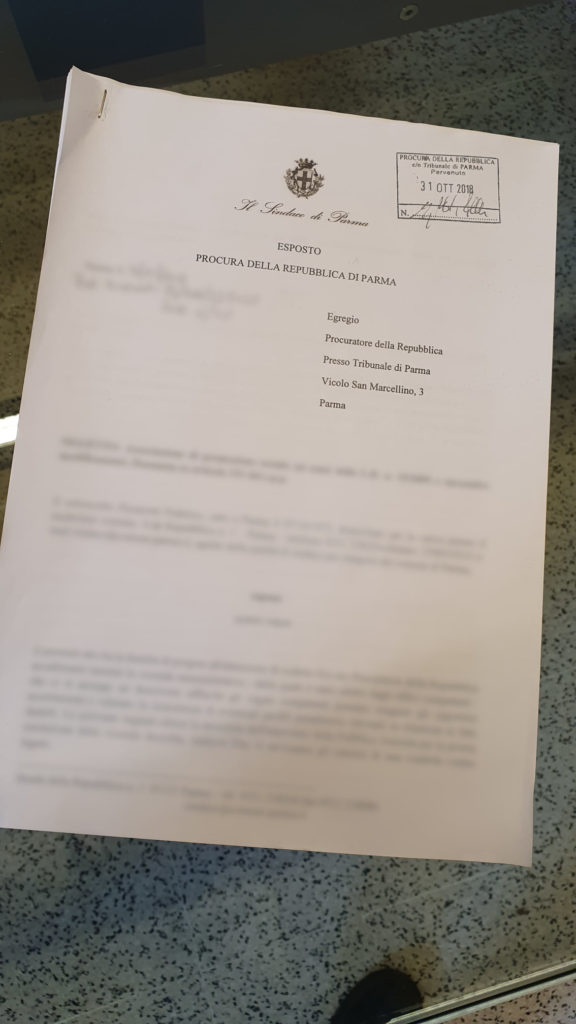 “Tuttavia, eccolo. Avrei preferito parlarne nei luoghi istituzionali, tutelando lì l’onorabilità e la serietà del Comune di Parma: quando qualcosa non va, noi siamo i primi a denunciarla.