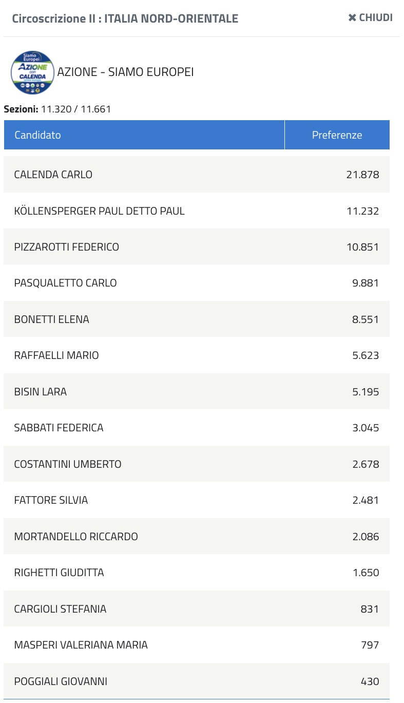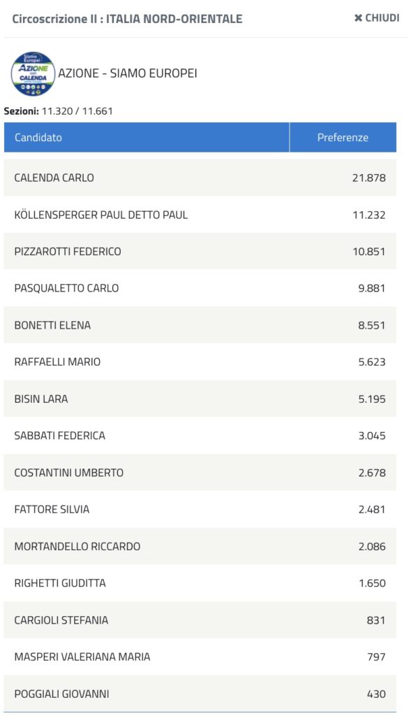 Federico Pizzarotti ha raccolto 10.851 preferenze nel collegio del nord-est all’interno della lista di Azione, piazzandosi al terzo posto.