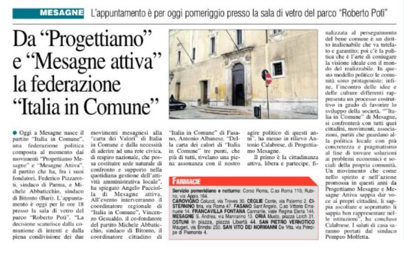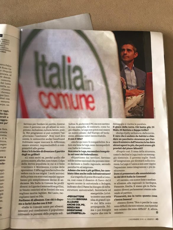 E pensare che quando è nata in pochi scommettevano una cicca su Italia in Comune. Sembrava l’ennesimo tentativo di fare il partitino dei sindaci, il refugium peccatorum dei senza partito… l’ambizione di un sindaco, putacaso al secondo mandato, che voleva costruirsi un futuro…